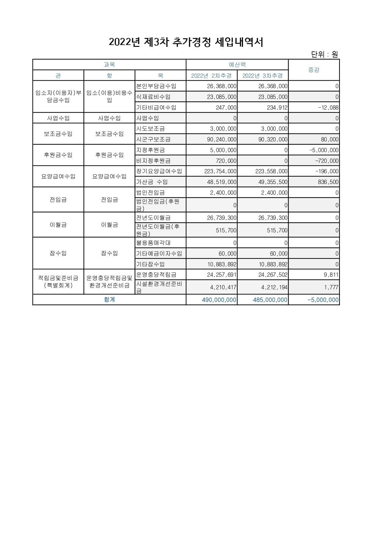사회복지법인 재무회계규칙 제10조 규정에 따라 2021년도 제 1차 추경(안)을 아래와 같이 공고합니다.