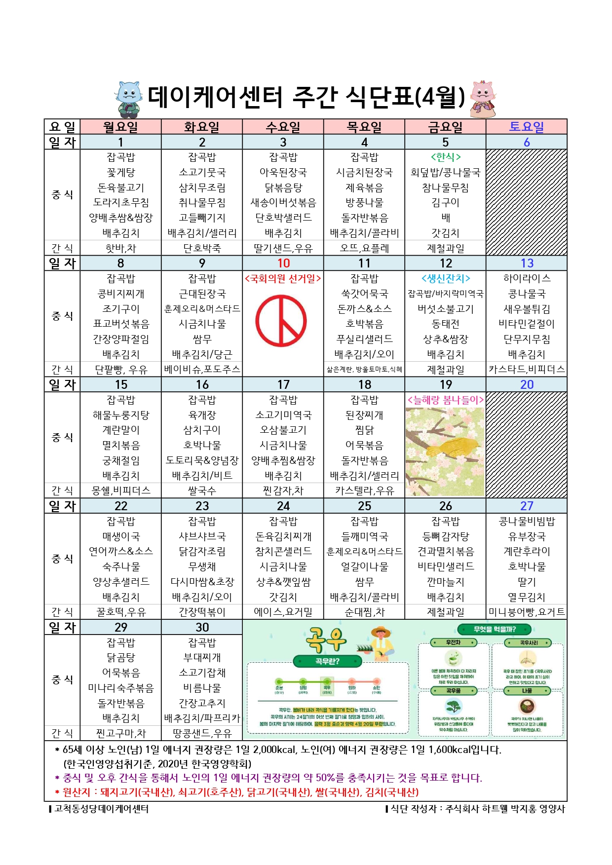 | 2024년 3월 식단표 (7) | 2024.02.26 |