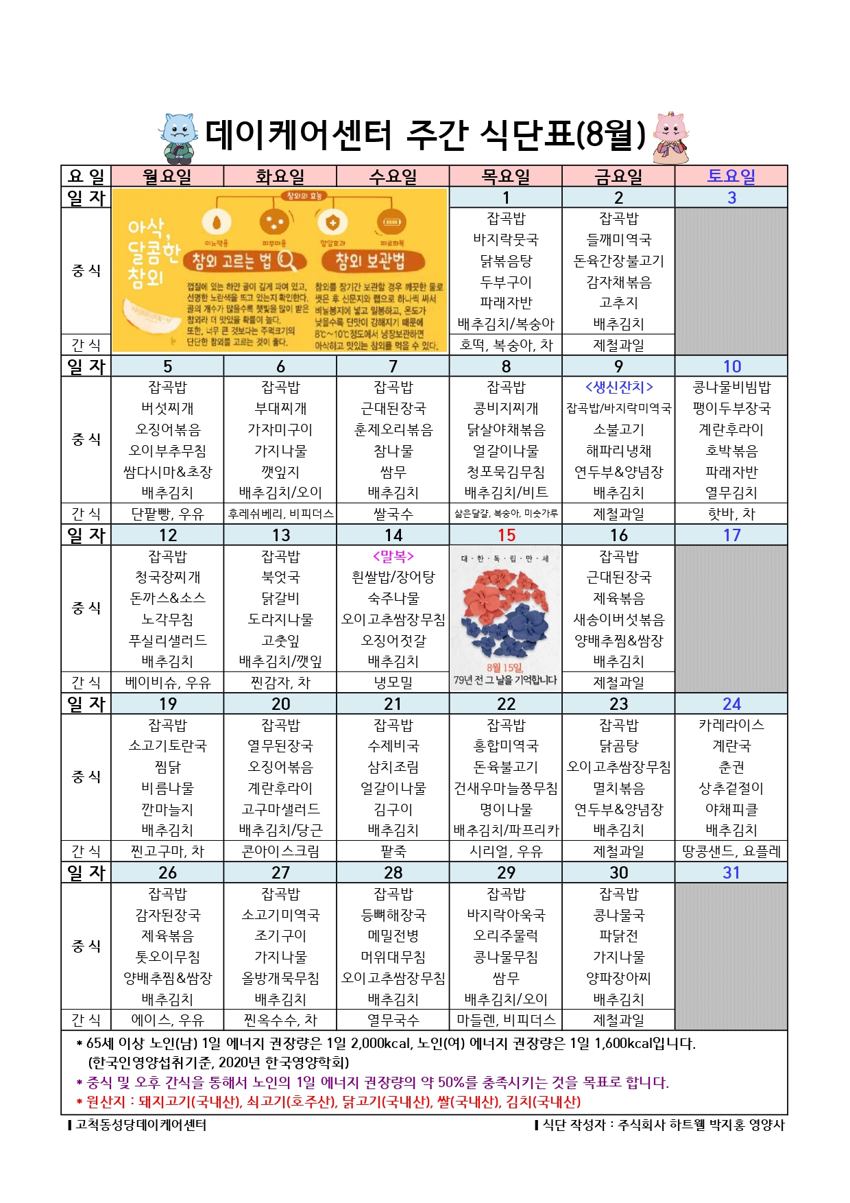 | 2024년 8월 식단 (0) | 2024.07.29 |