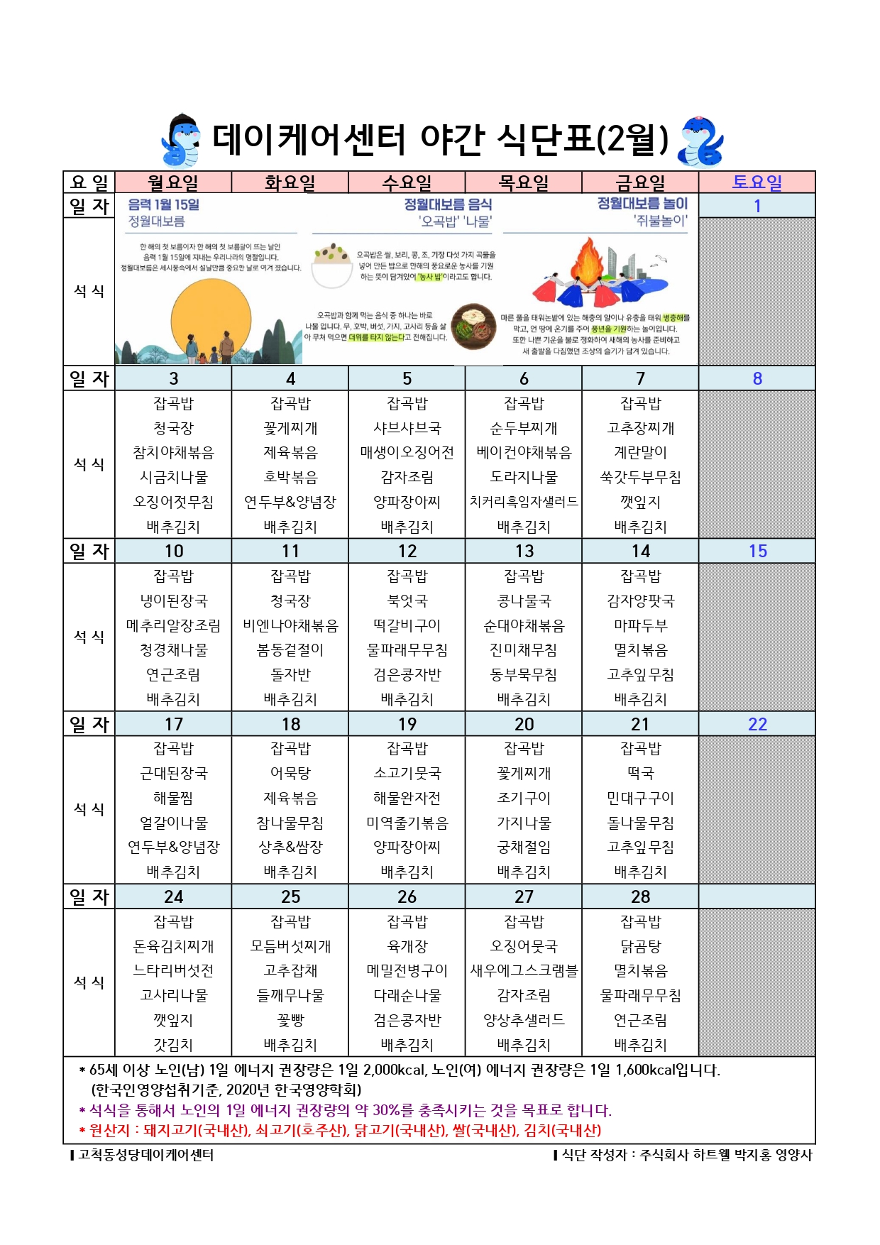 | 2025년 1월 식단표 (2) | 2024.12.28 |