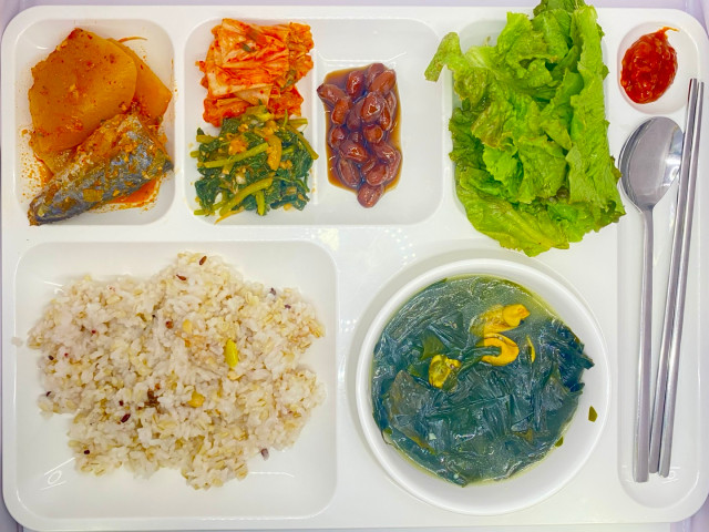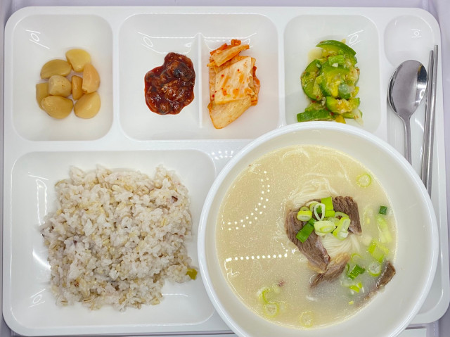 7/30(중복 특식) 잡곡밥, 소머리곰탕, 호박나물, 오징어젓갈, 깐마늘지, 배추김치