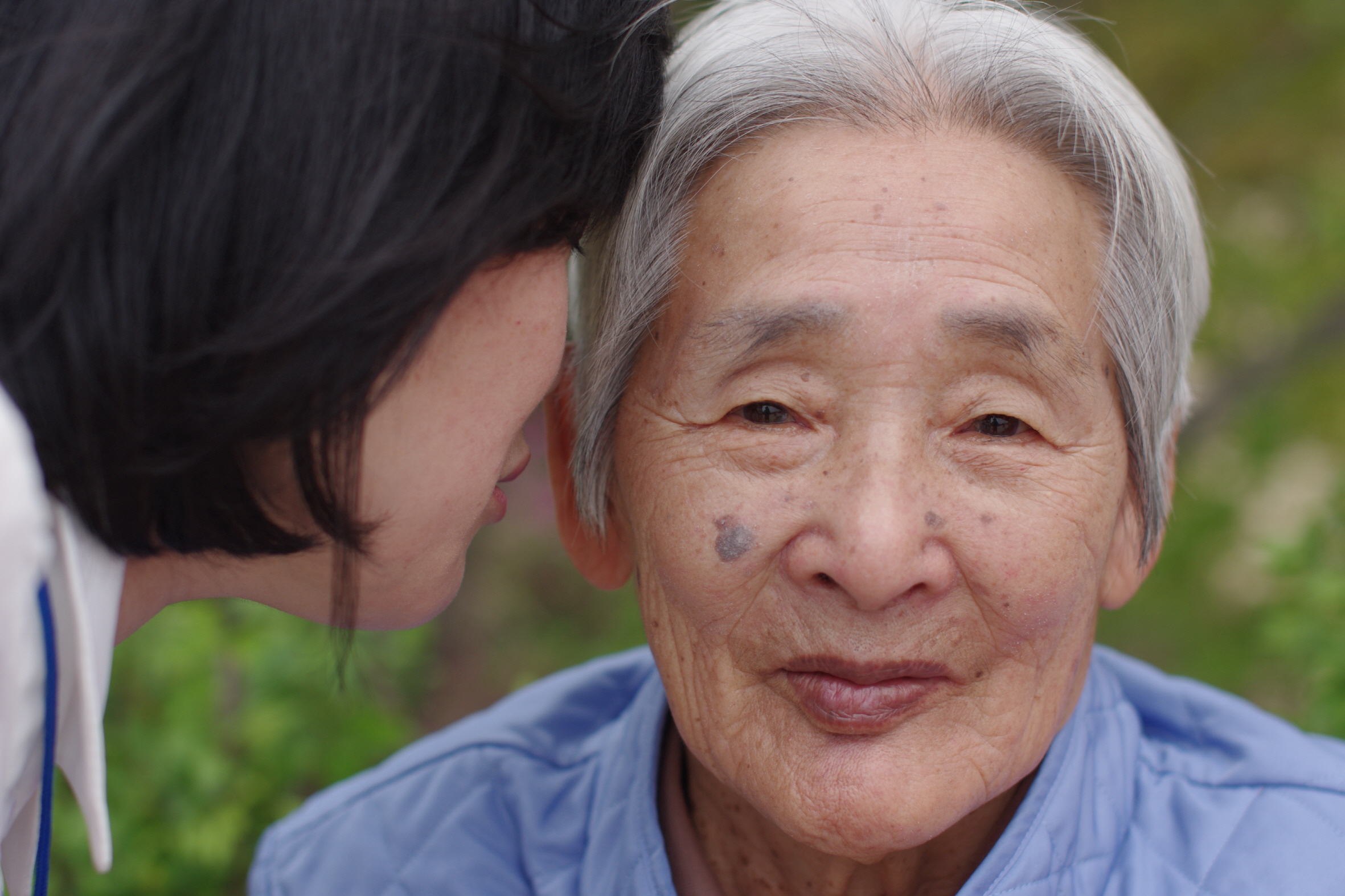 작품설명 : 2014년 늘해랑 봄나들이, 화단에 앉아 꽃구경을 하고 계신 어르신에게 가까이 다가가 이야기하는 사회복지사의 모습을 담았습니다. 어르신은 눈빛과 표정으로 알아들었음을 대답합니다.
